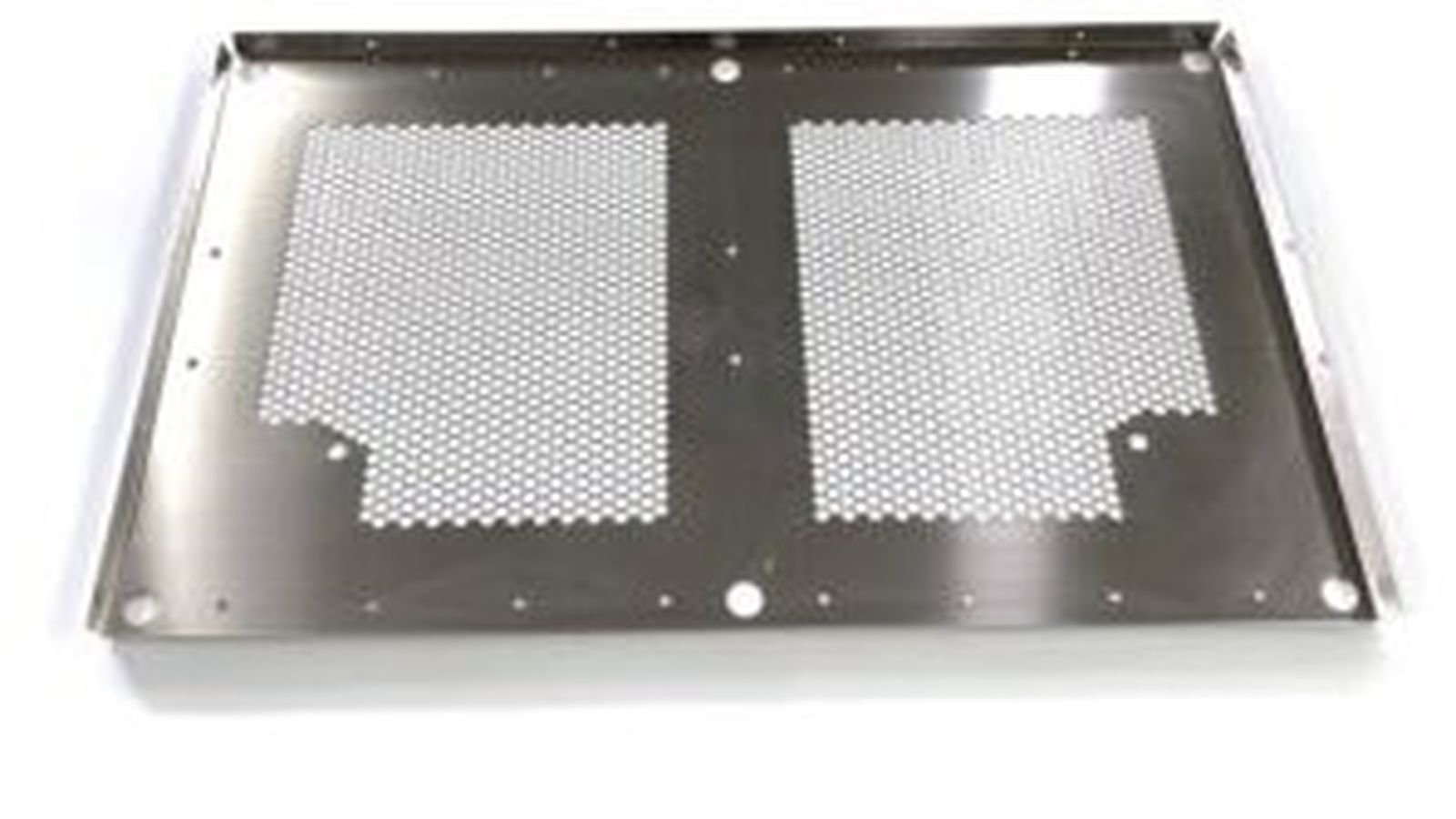 The one-piece shelf is the cornerstone of this design. The shelf is made from a thick sheet of stainless steel, there are no welded seams or joints, and the hex pattern is punched out of the sheet.
