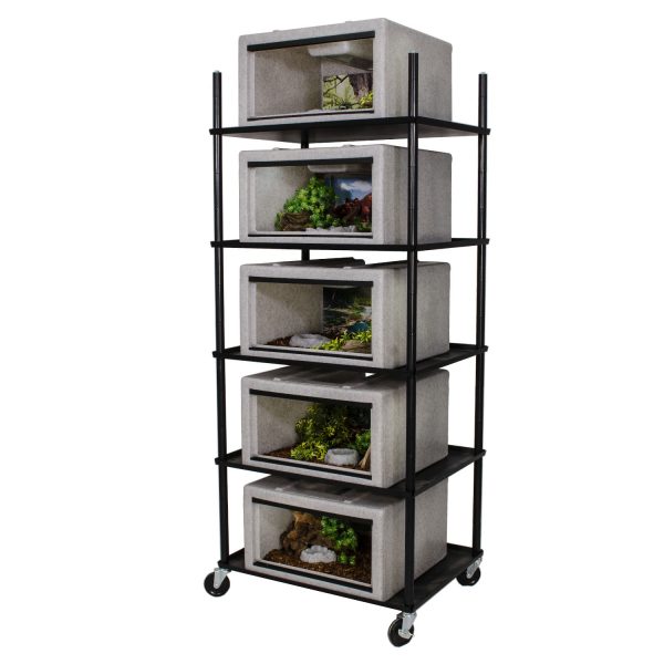You can get just the shelf or get the shelf and 5 Model 211 cages, or the full décor package including bark, roots, plants, bowls, and more.