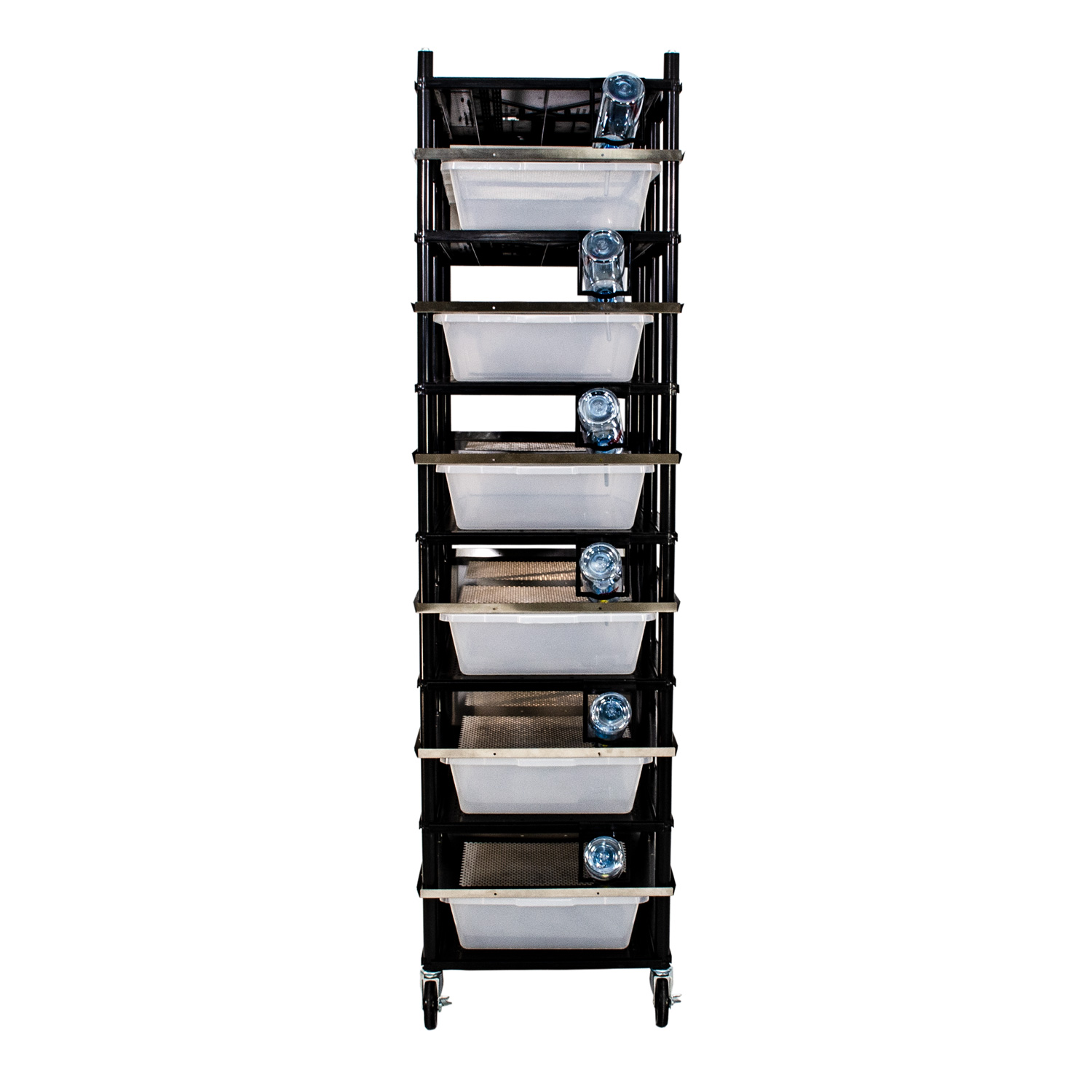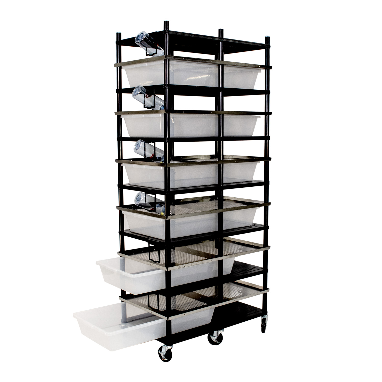 This tall 6-level rodent rack is perfect for breeding rats. It is designed to allow easy care of your animals on a mobile platform.