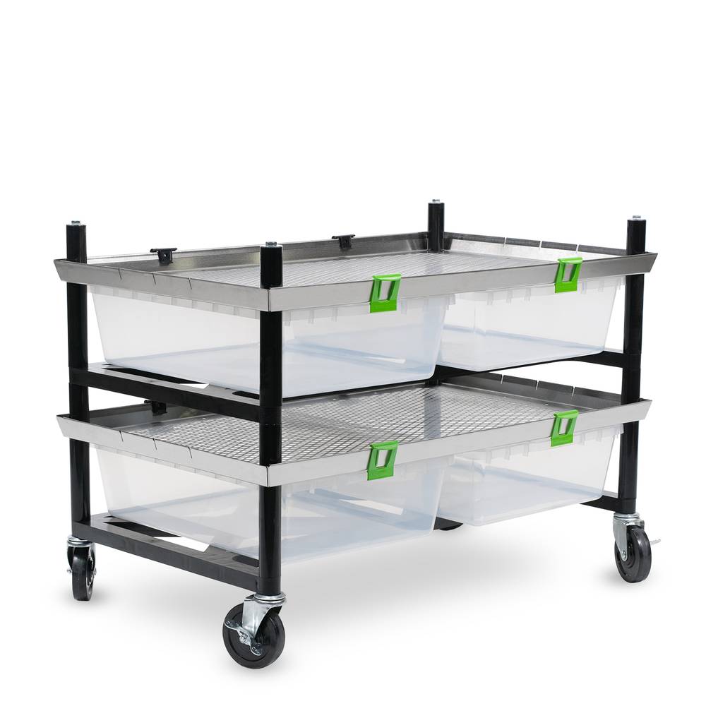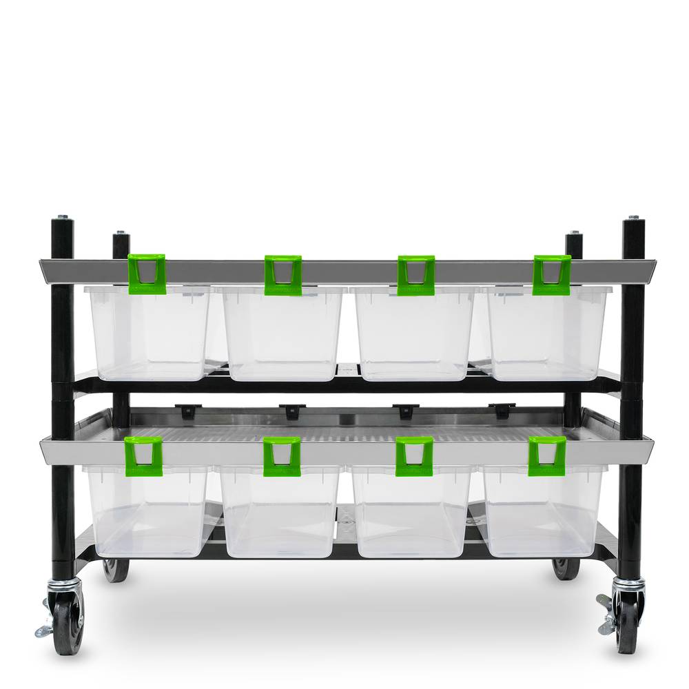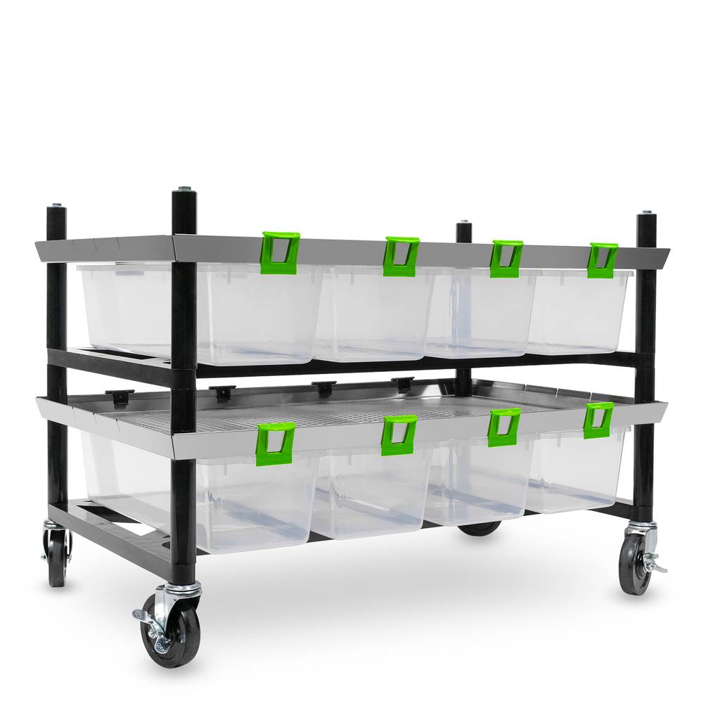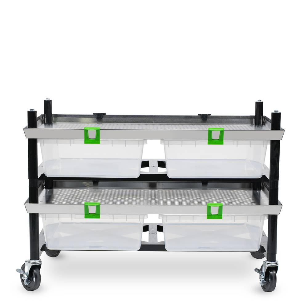 Choose the supply tray kit to keep extra tubs and supplies organized. This option adds roughly 18" to the total rack height. An additional shelf is also available for your watering system.