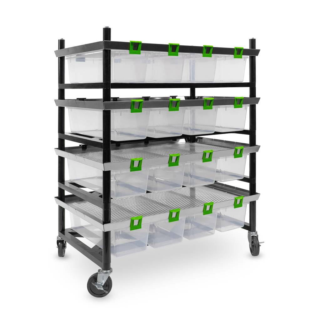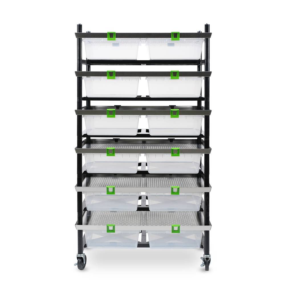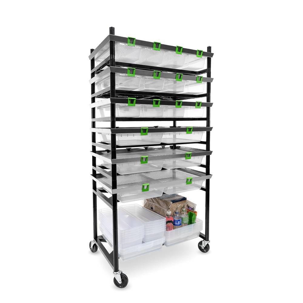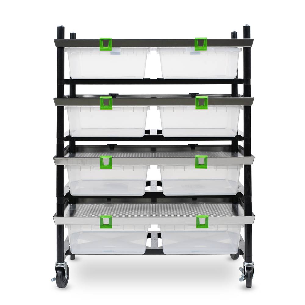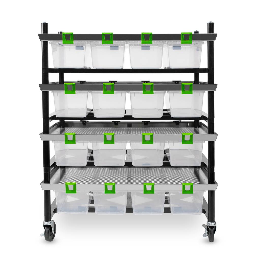 Choose the supply tray kit to keep extra tubs and supplies organized. This option adds roughly 18" to the total rack height. An additional shelf is also available for your watering system.