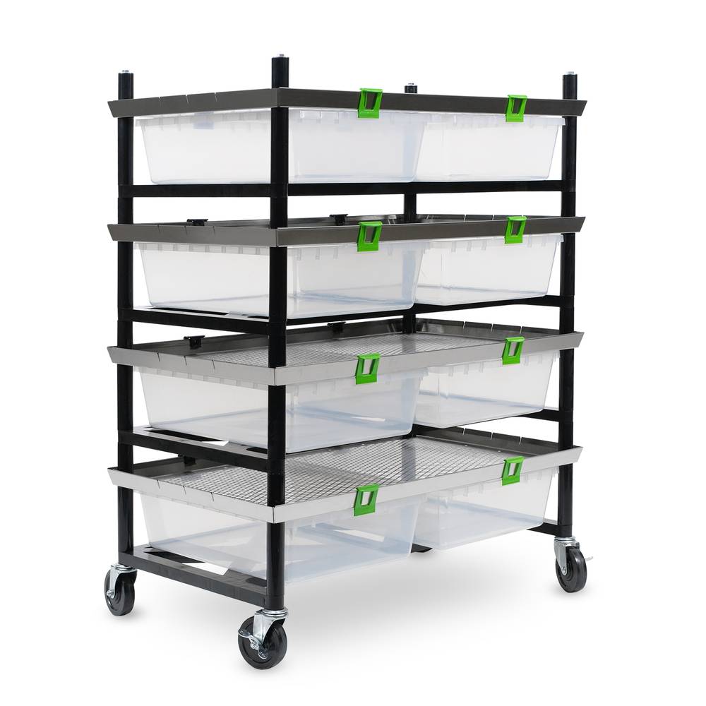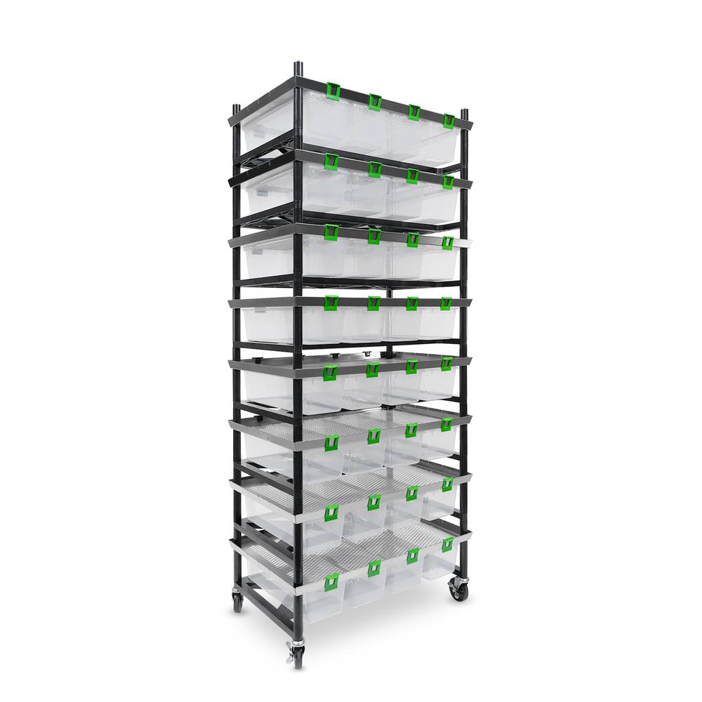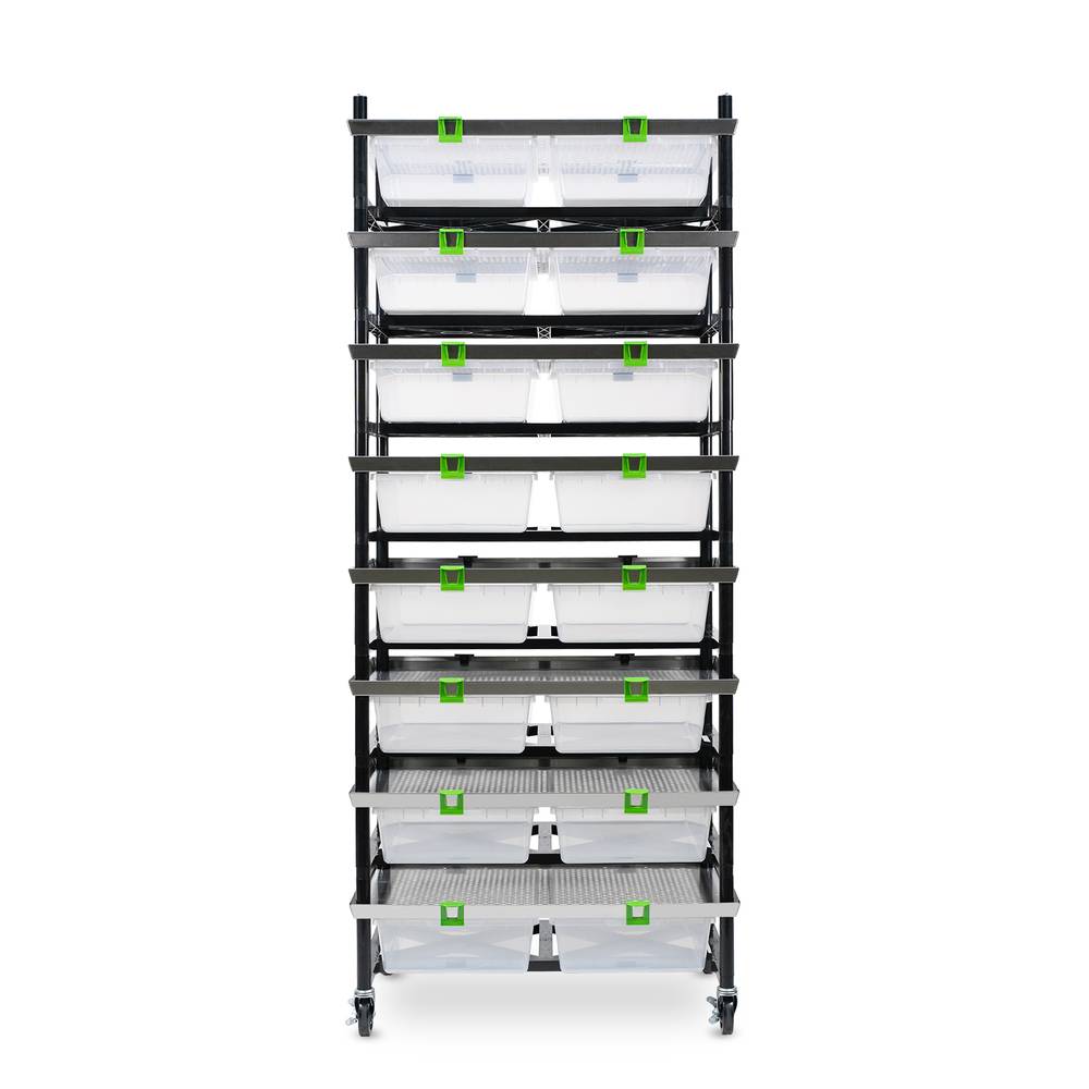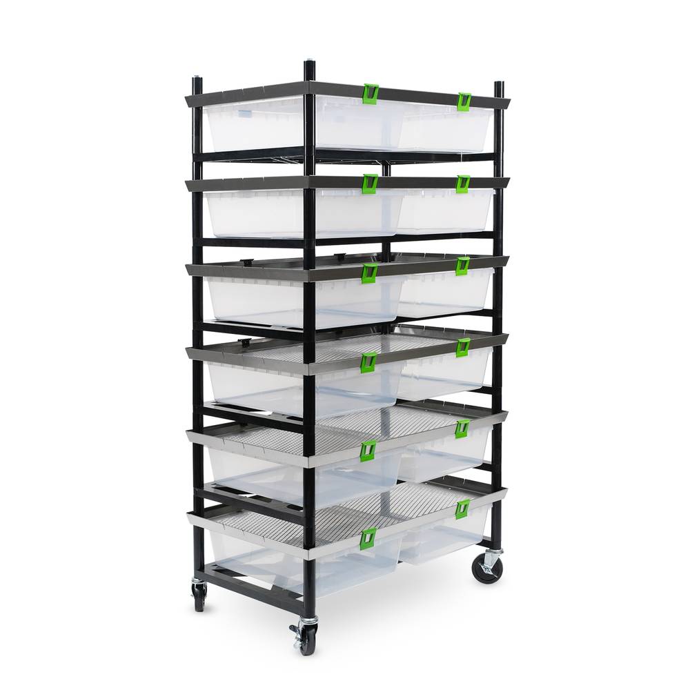 Choose the supply tray kit to keep extra tubs and supplies organized. This option adds roughly 18" to the total rack height. An additional shelf is also available for your watering system.