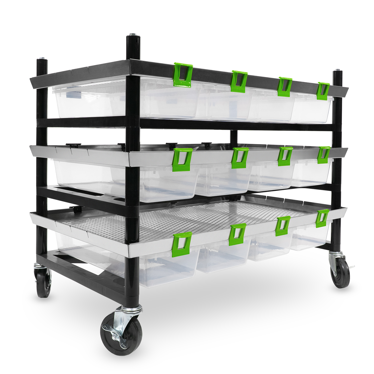 The Vision Rodent Versa-Rack is designed for flexibility and efficiency in reptile care, accommodating various species’ heat and light requirements.