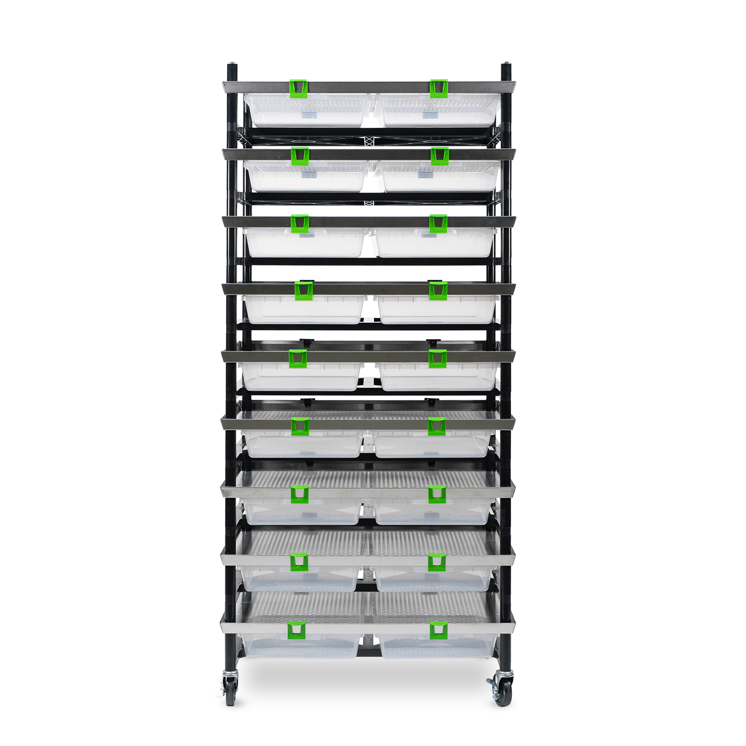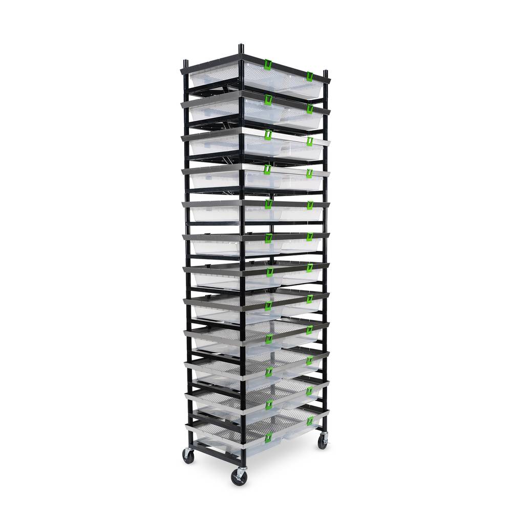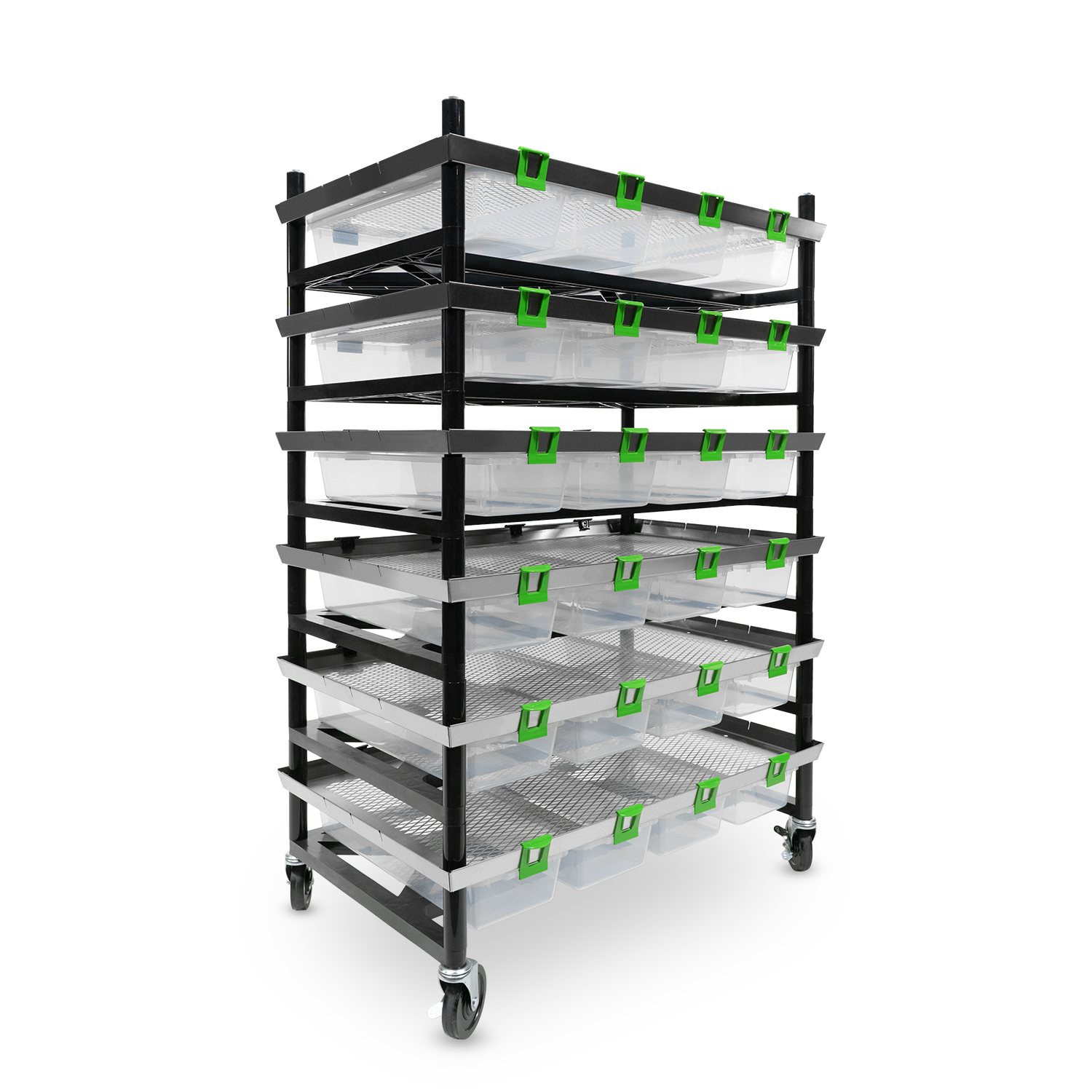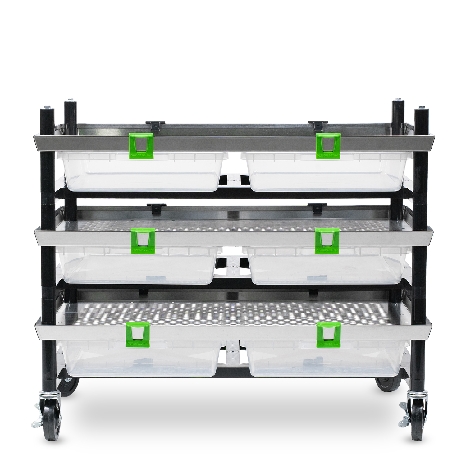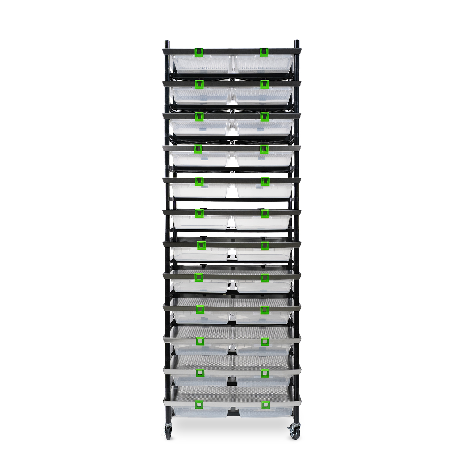 V-20-S Tubs (3.5″H x 20″L x 7.375″W): 3 levels per section, 12 tubs per level (coming soon!)