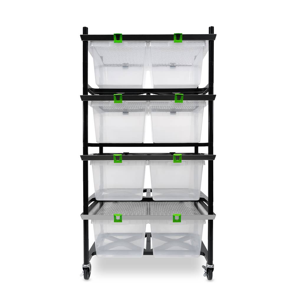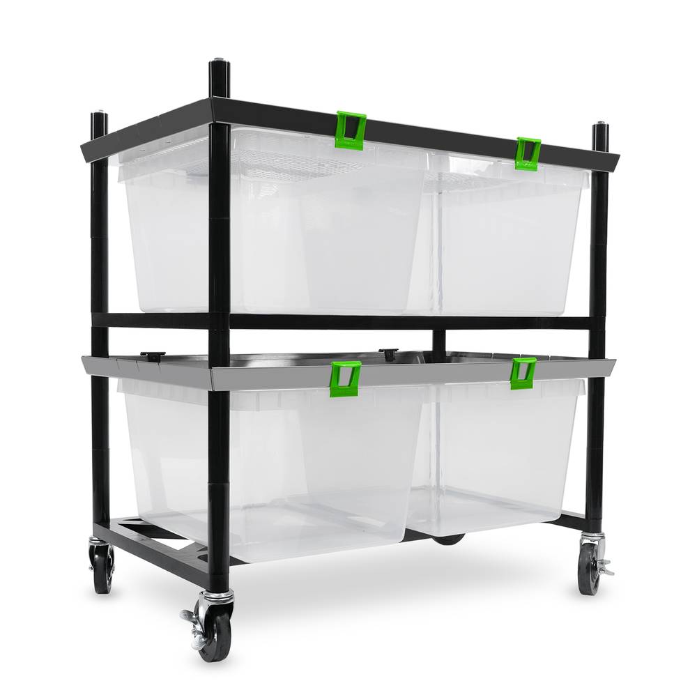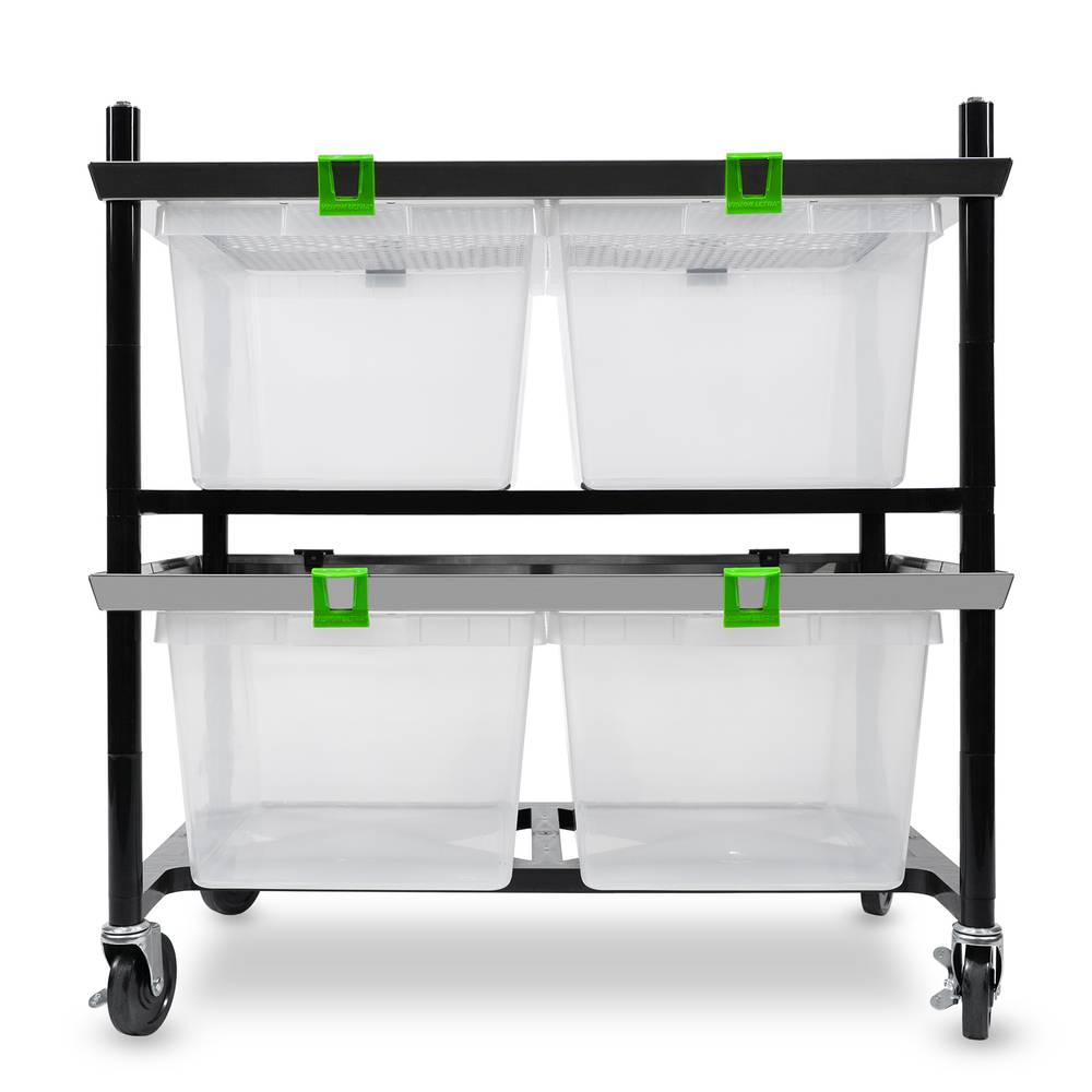 V-35-2X Tubs (10.75″H x 20″L x 15″W): 2 levels per section, 4 tubs per level