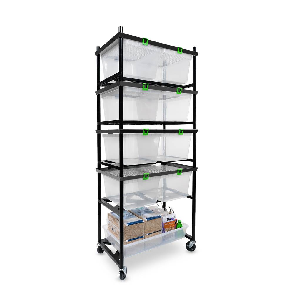 The Rodent Versa-Rack is an expandable setup. For example, say you initially order a single section with casters or feet. To expand your setup later, you may order more sections (without casters or feet) and connect them to your current section.