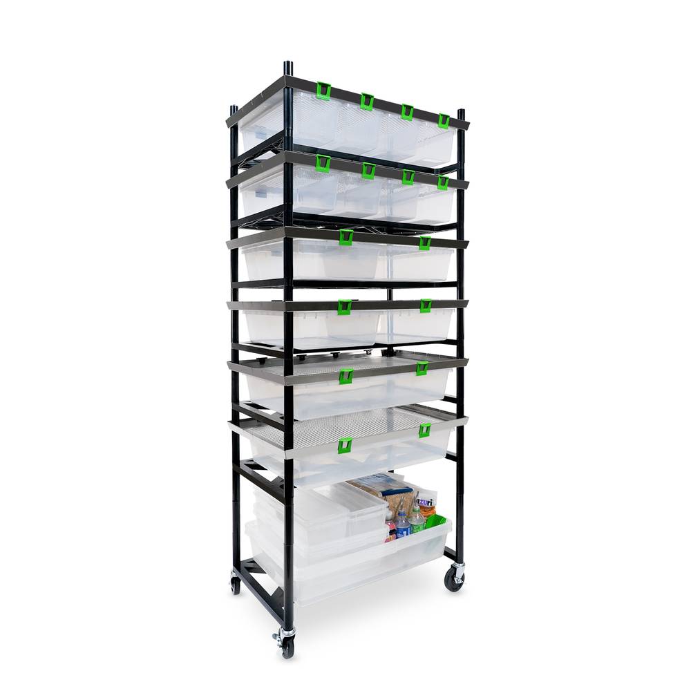 The Rodent Versa-Rack is an expandable setup. For example, say you initially order a single section with casters or feet. To expand your setup later, you may order more sections (without casters or feet) and connect them to your current section.