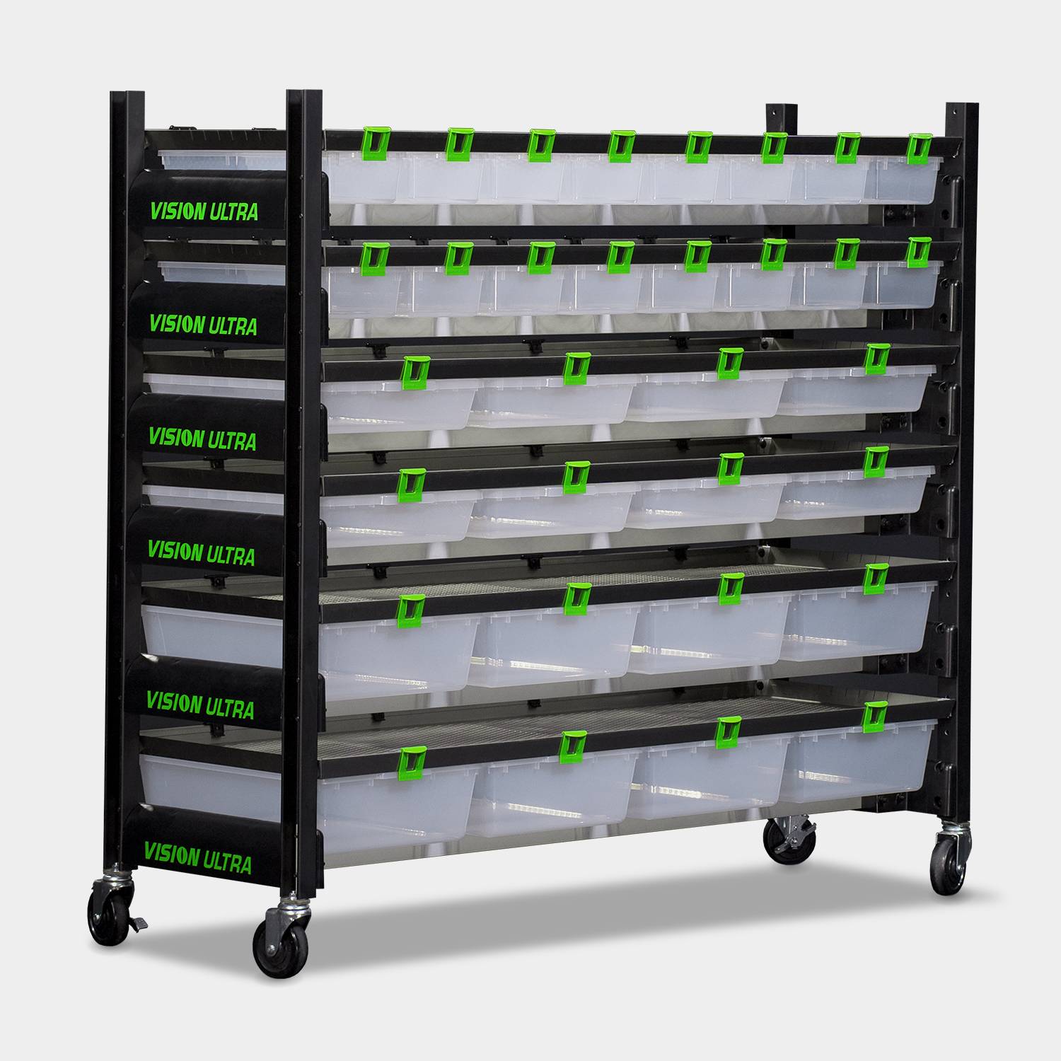 Vision Ultra is not a “one-size-fits-all” type of system. When building your rack, you may select a Full Package with 1 type of Vision Tub, or go the “Hybrid route”, mixing and matching tub heights and widths. This is the best option to breed different sized rodents within the same rack.