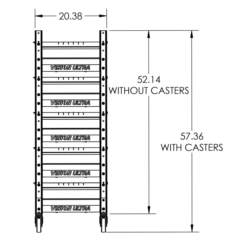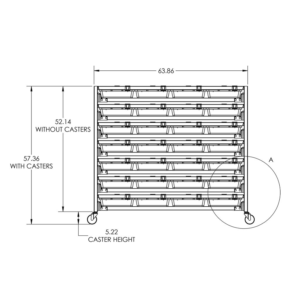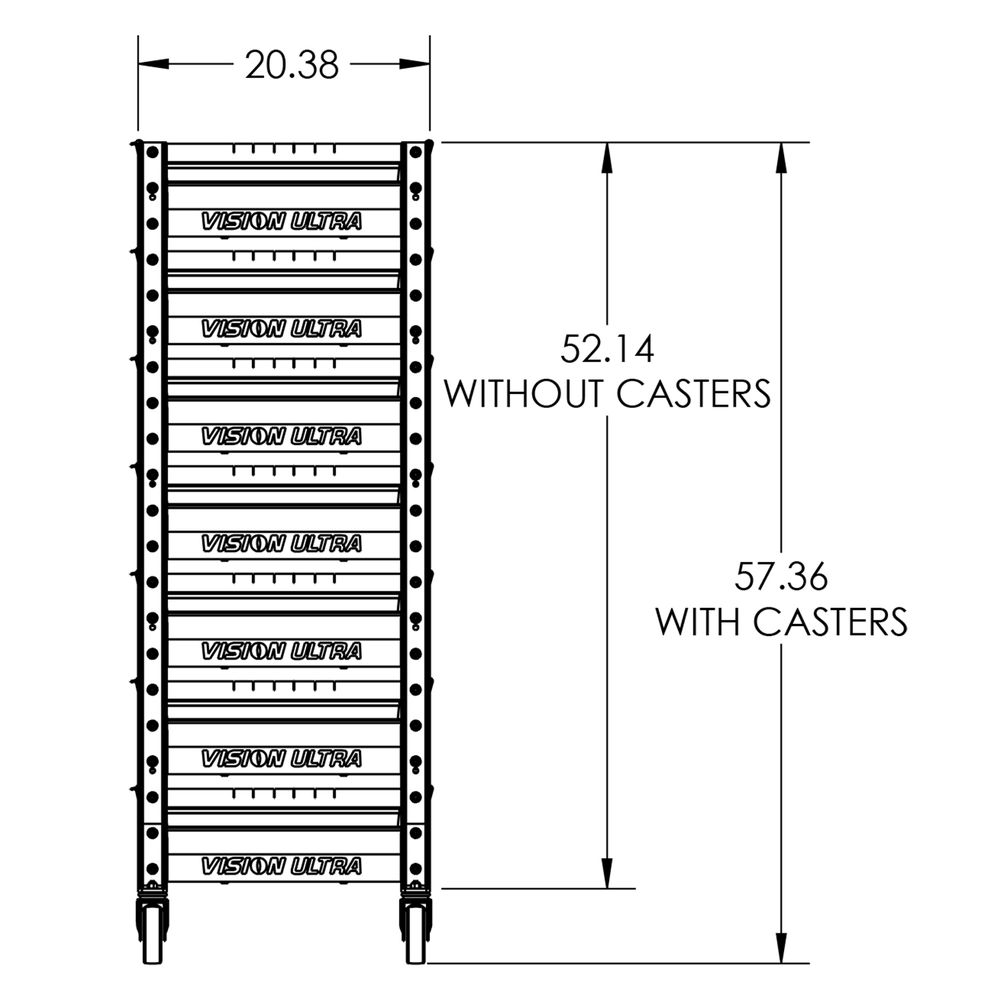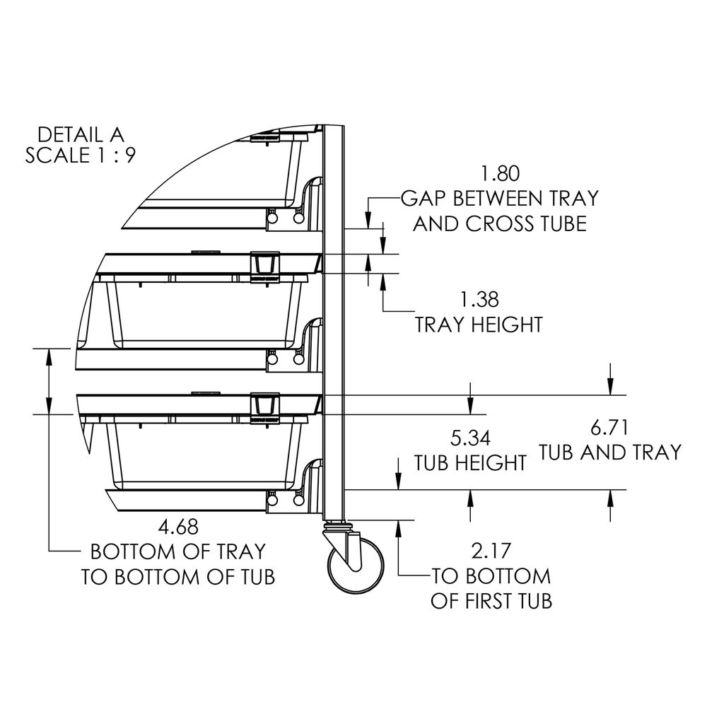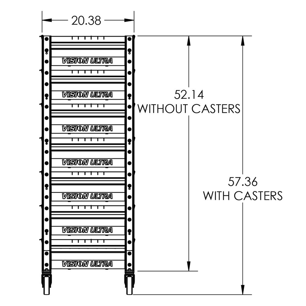 V-18 Tubs (3.5″H x 7.375″W): 7 shelves, 8 tubs per level
