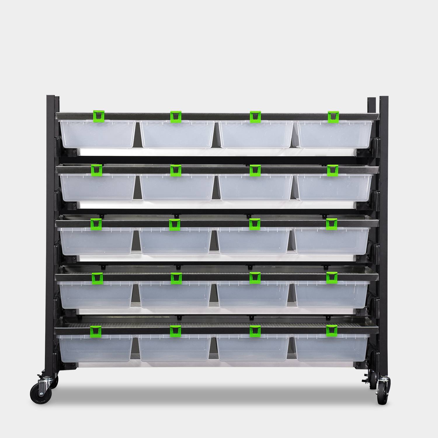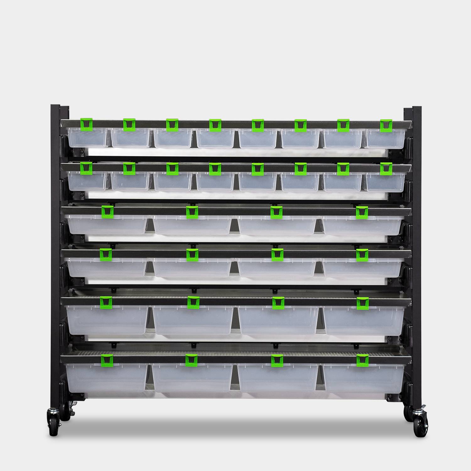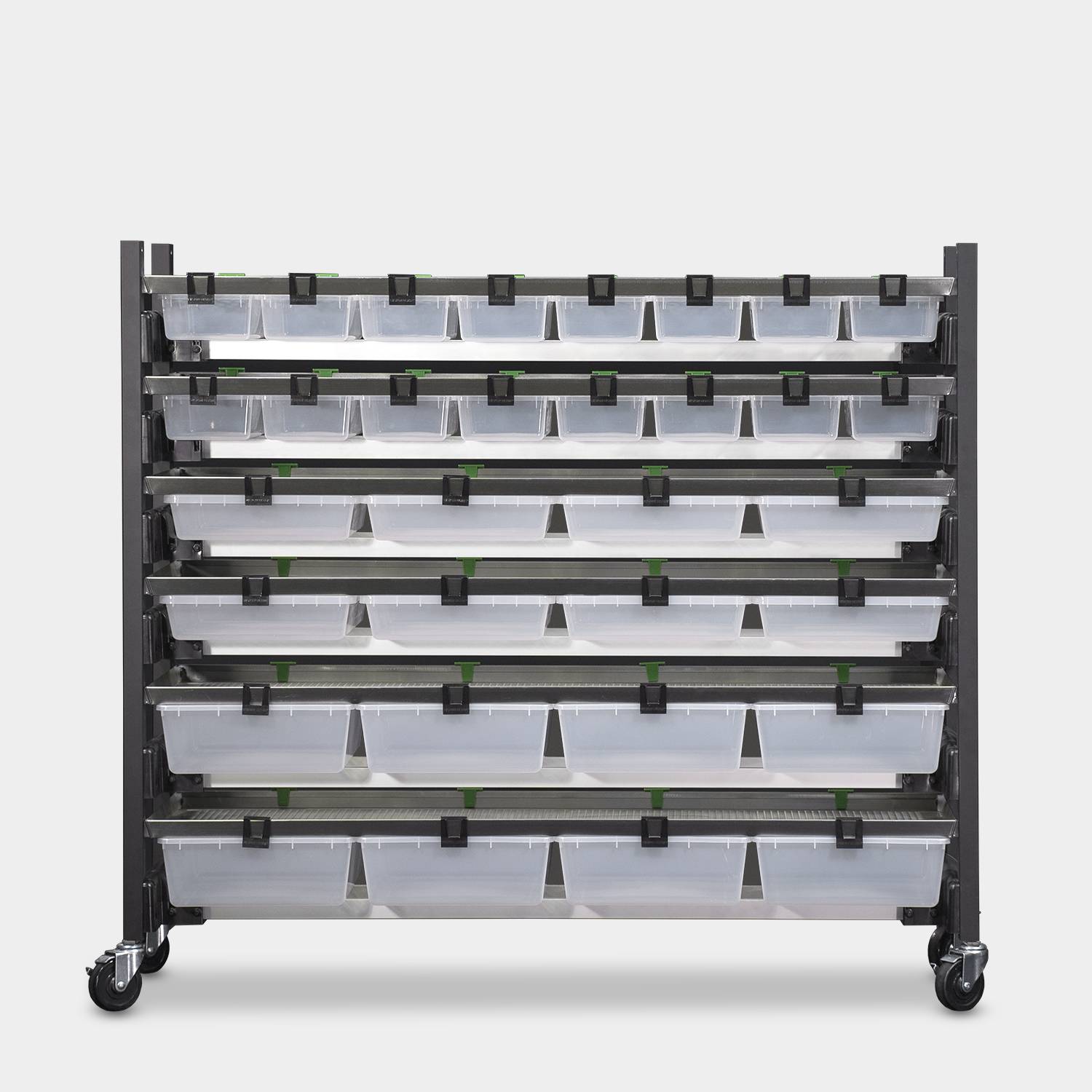 Ultra-Efficient: Drop-trough food trays and easy-to-use watering methods make servicing your rack quick and easy.