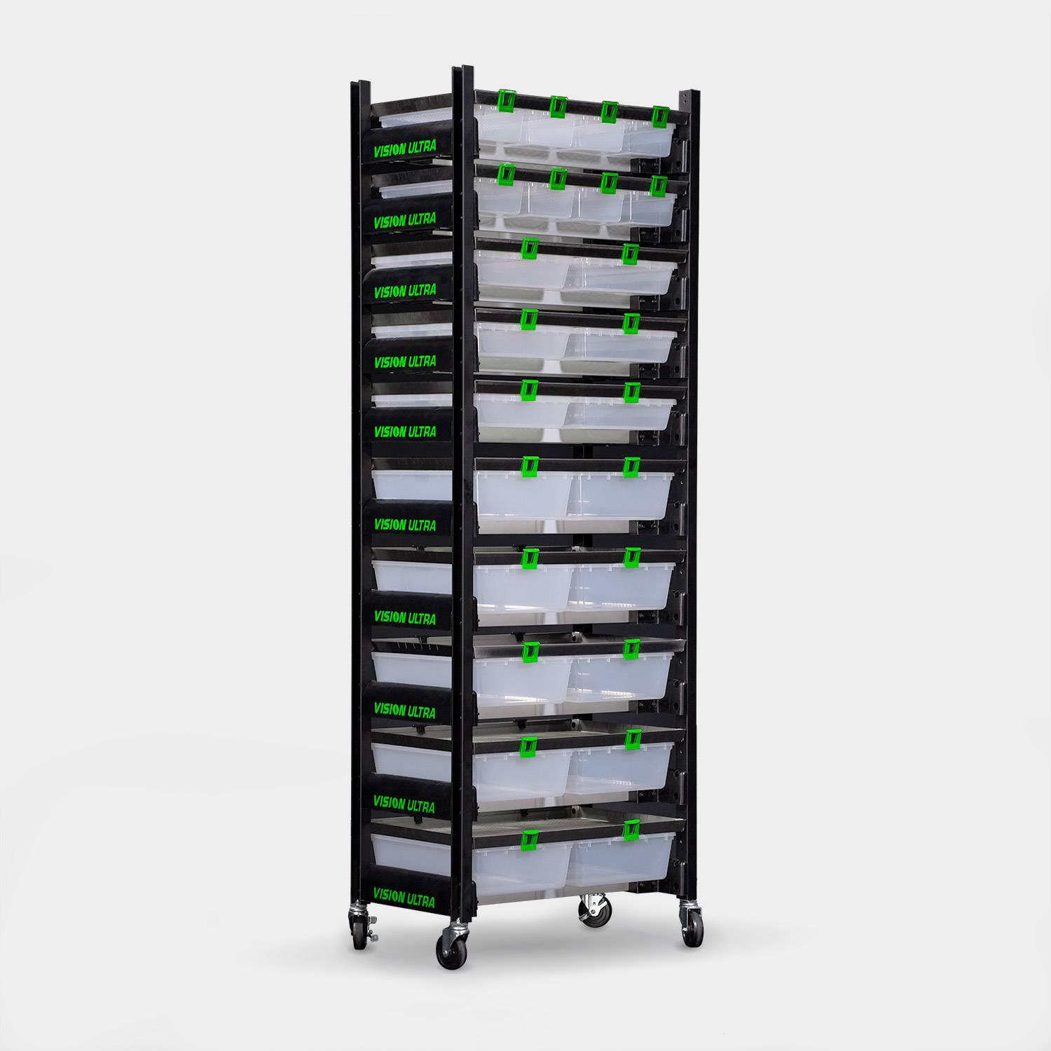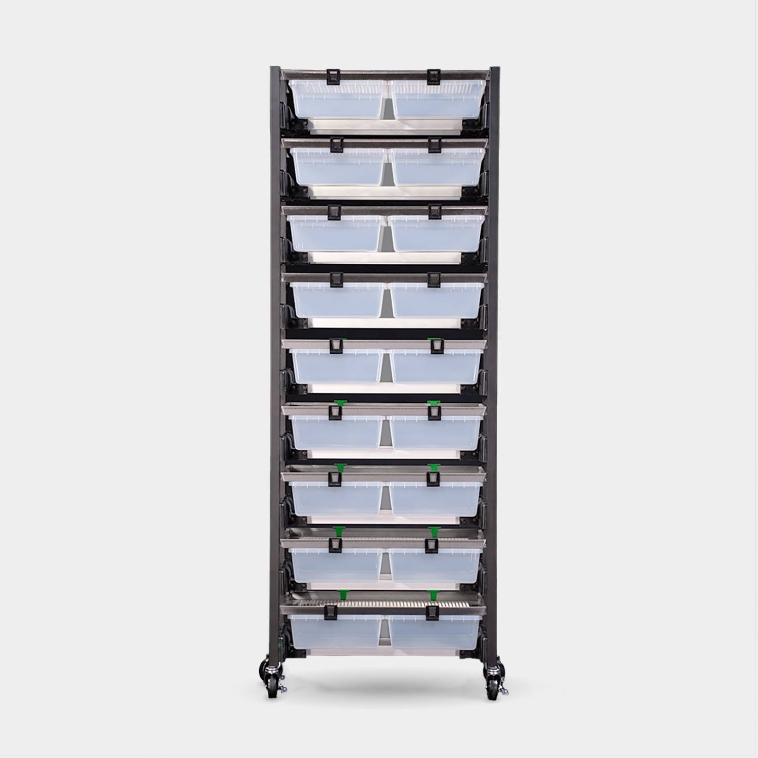 Vision Ultra is not a “one-size-fits-all” type of system. When building your rack, you may select a Full Package with 1 type of Vision Tub, or go the “Hybrid route”, mixing and matching tub heights and widths. This is the best option to breed different sized rodents within the same rack.