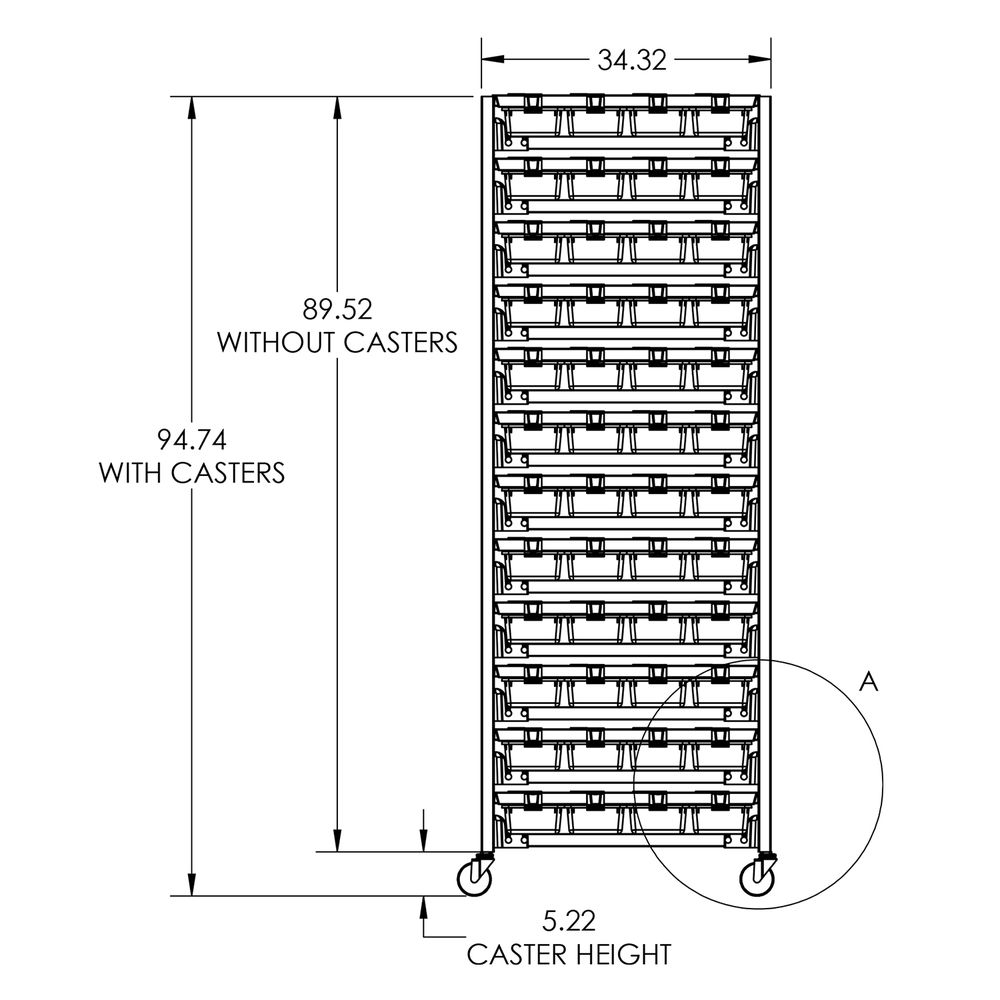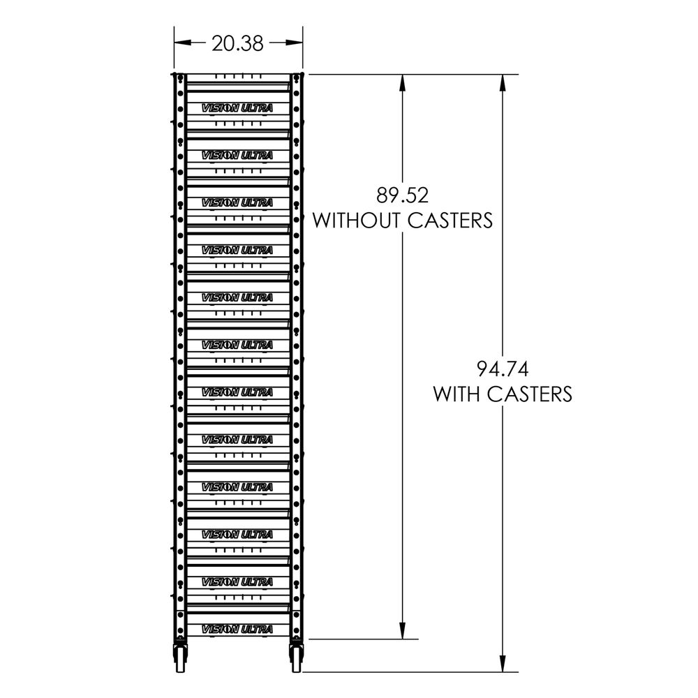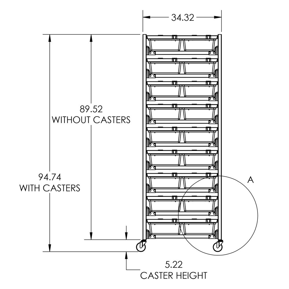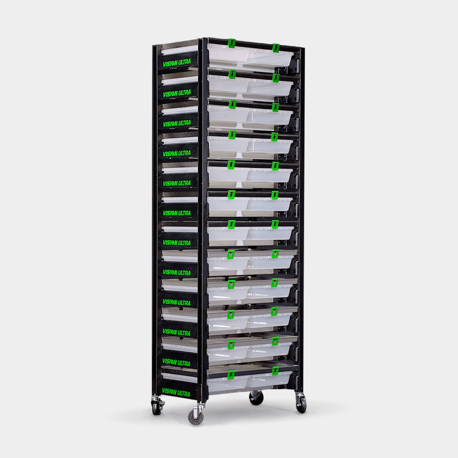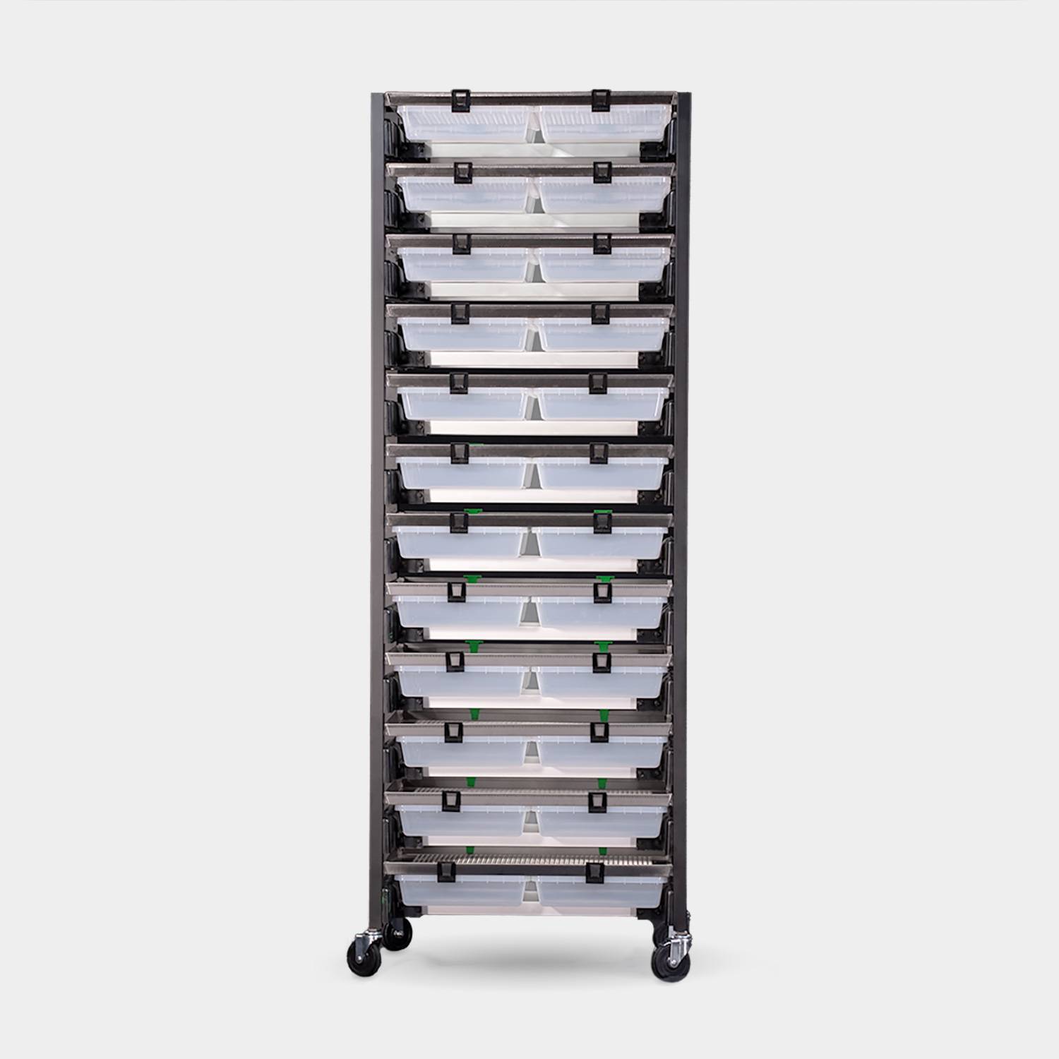 V-35s Tubs (3.5″H x 15″W): 12 shelves, 2 tubs per level