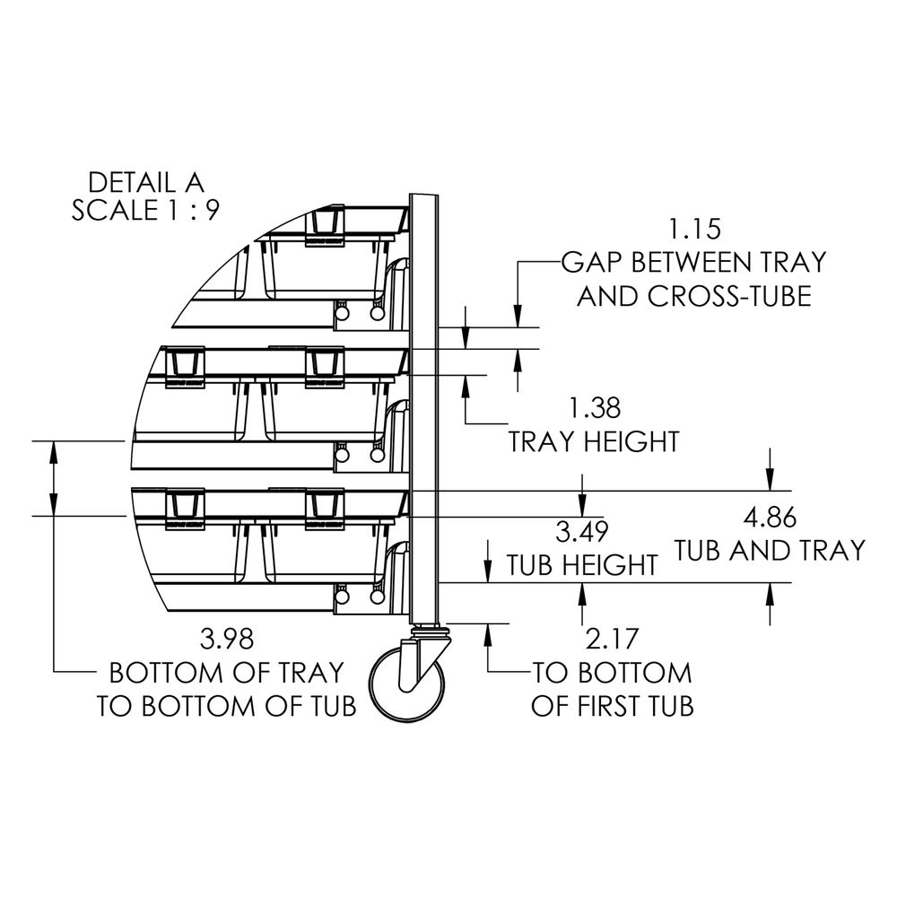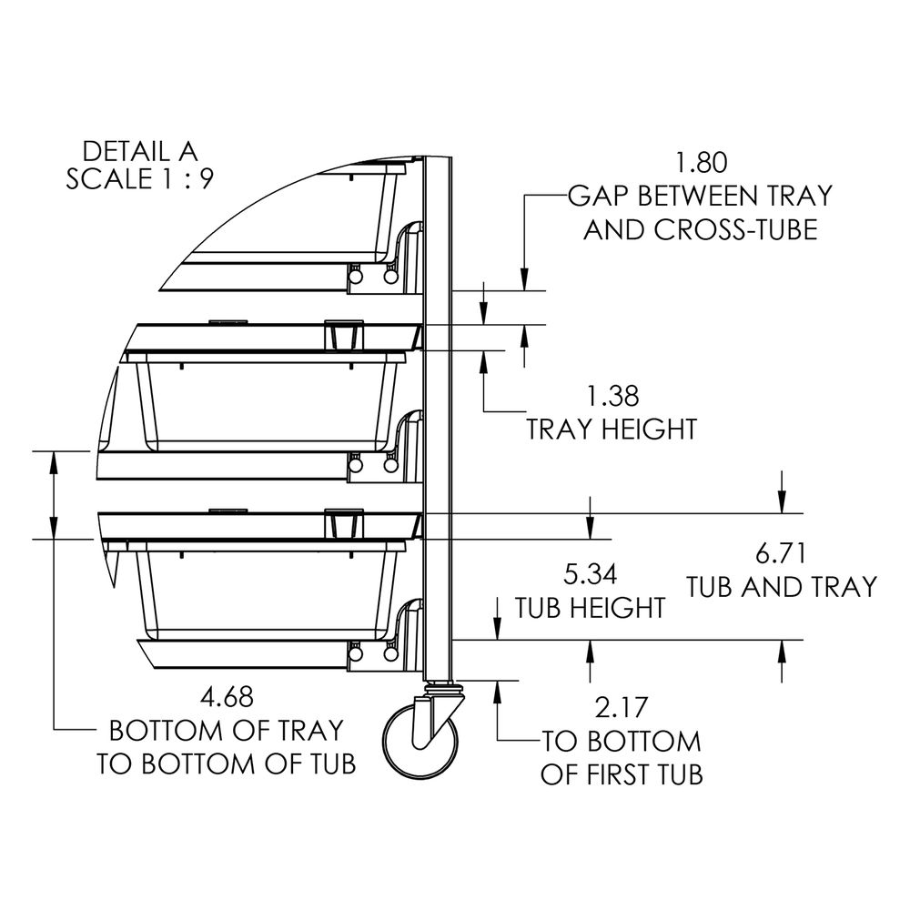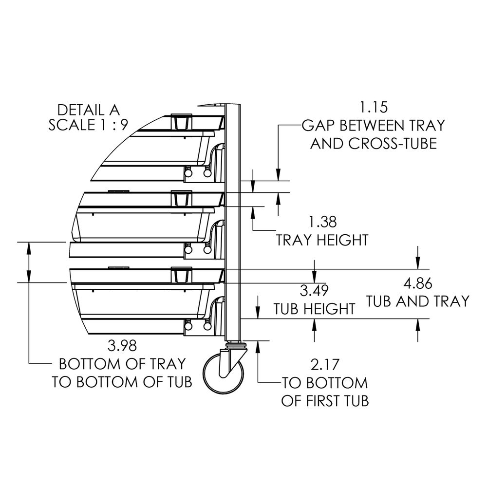 V-18 Tubs (3.5″H x 7.375″W): 12 shelves, 4 tubs per level