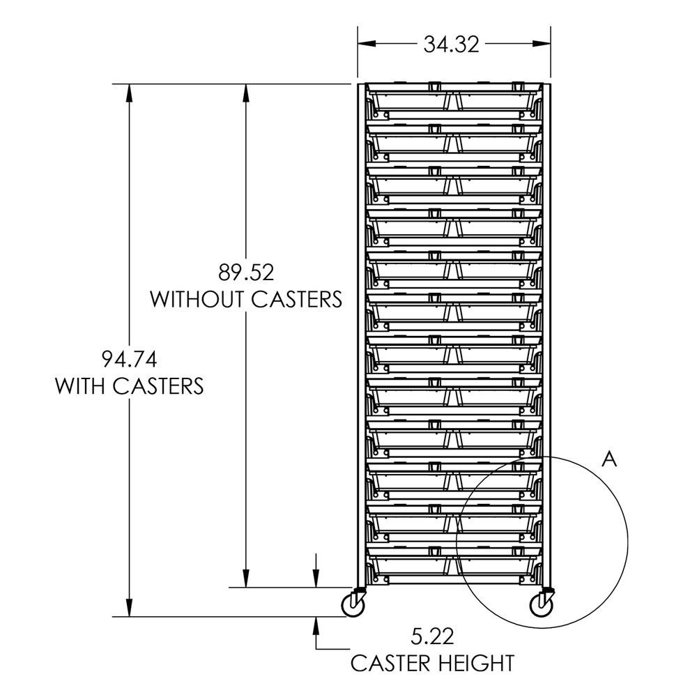 V-35 Tubs (5.375″H x 15″W): 9 shelves, 2 tubs per level