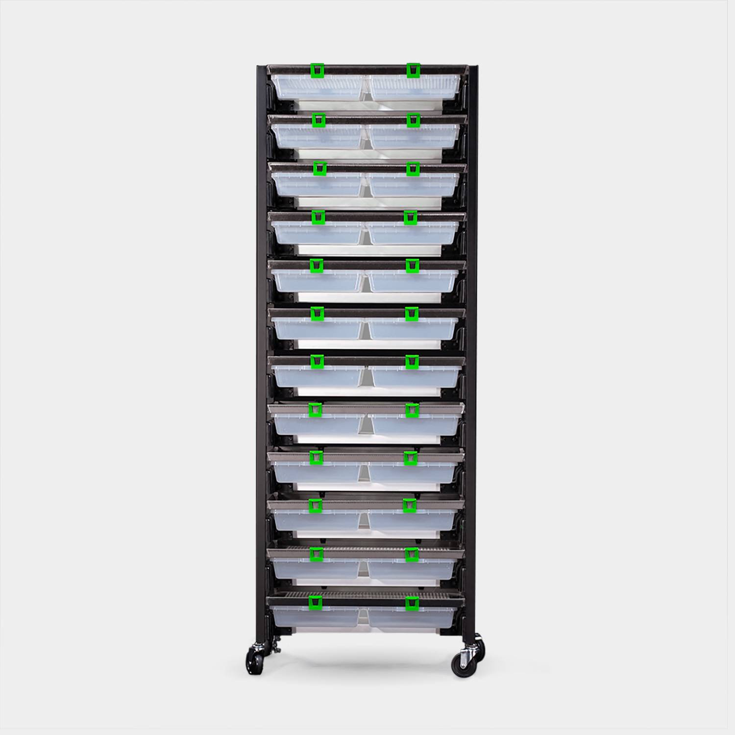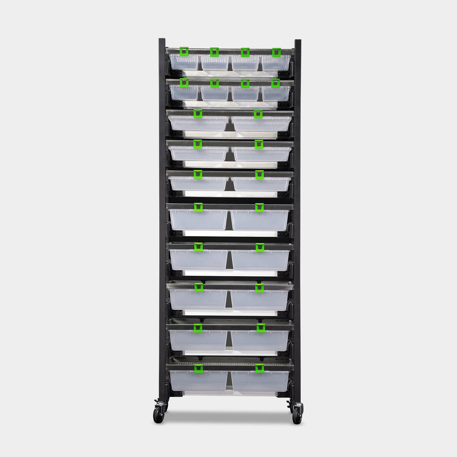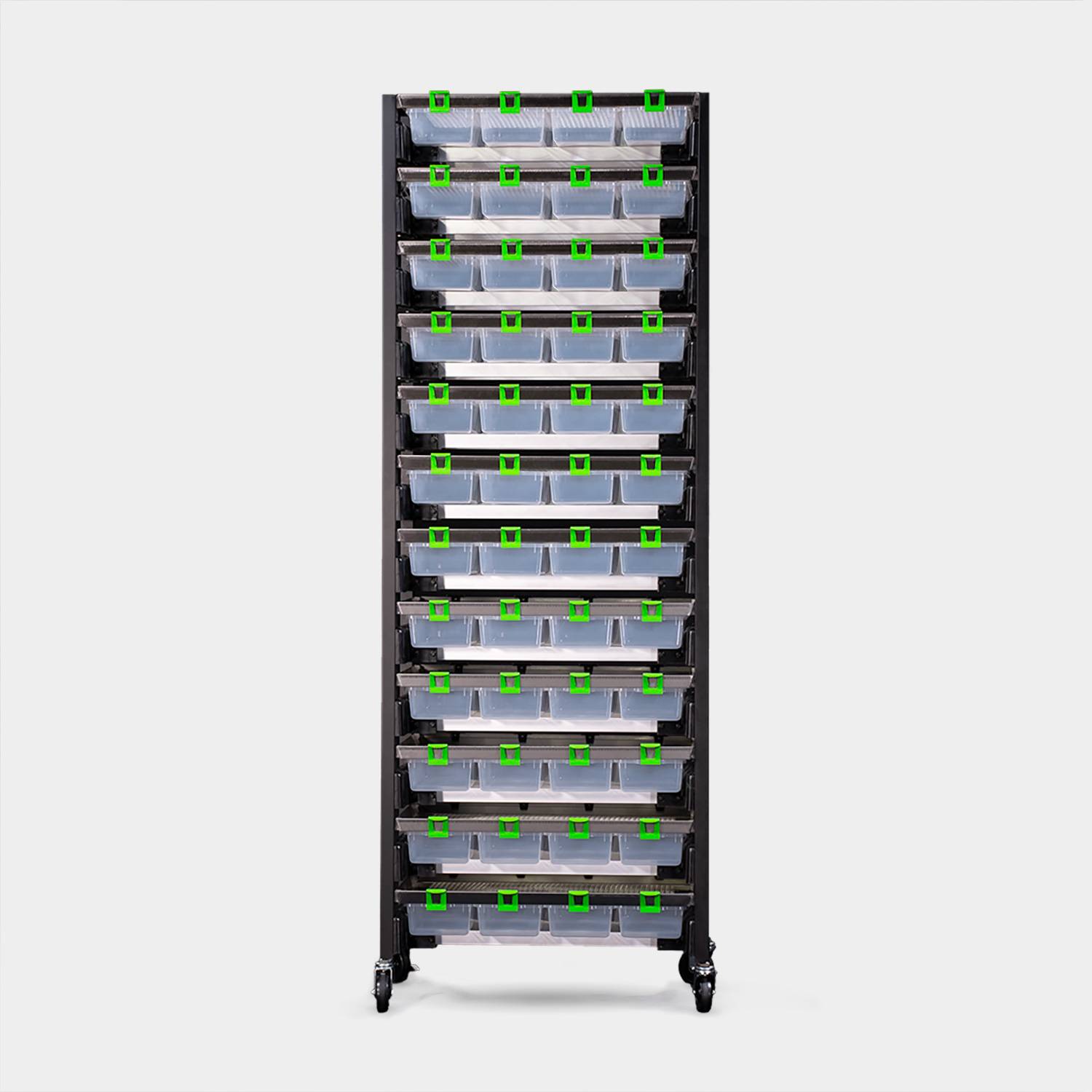 Ultra-Efficient: Drop-trough food trays and easy-to-use watering methods make servicing your rack quick and easy.