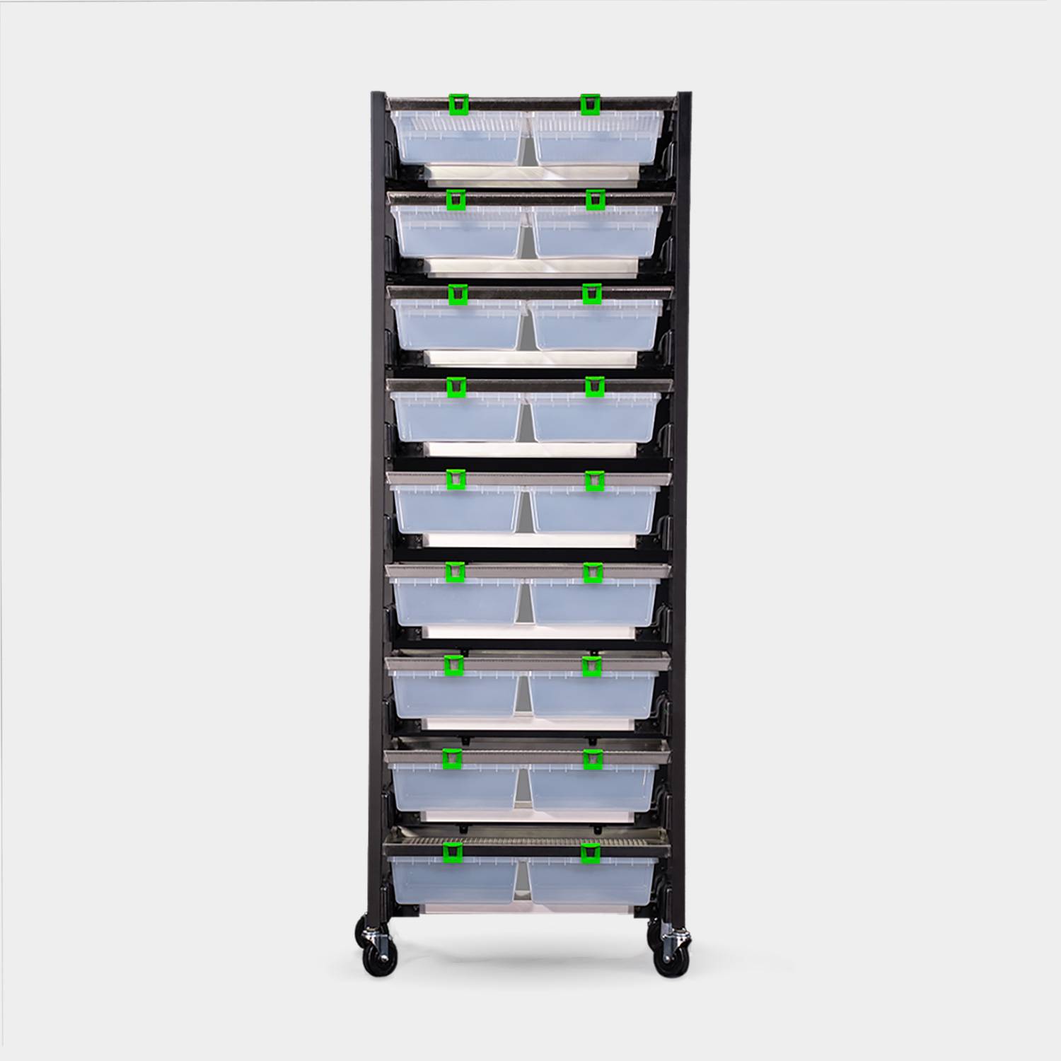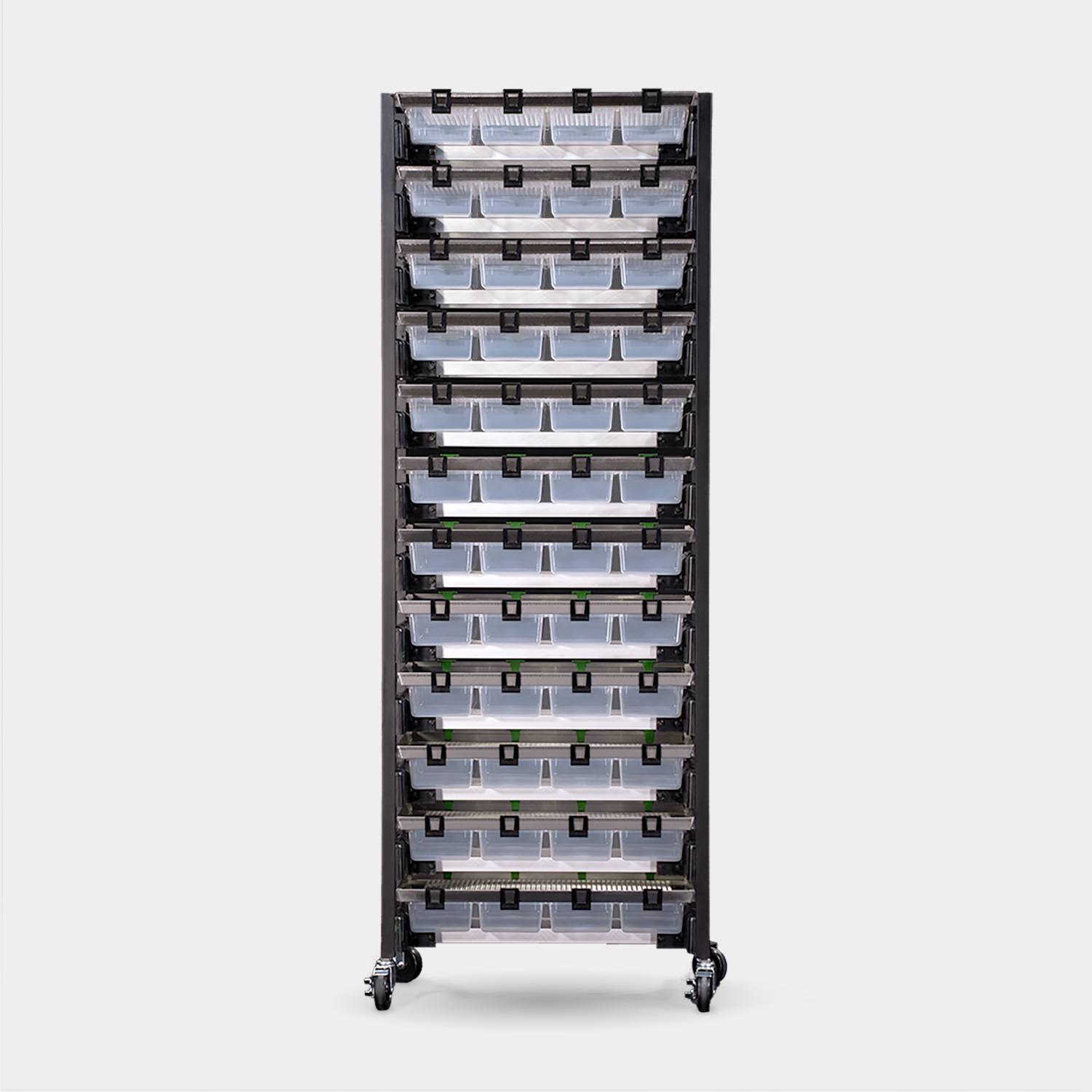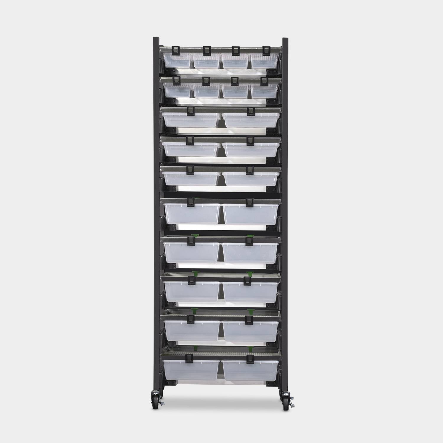 Ultra-Efficient: Drop-trough food trays and easy-to-use watering methods make servicing your rack quick and easy.