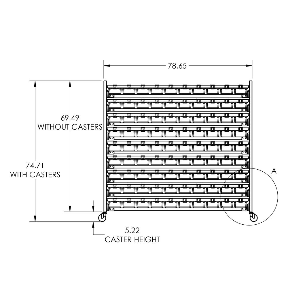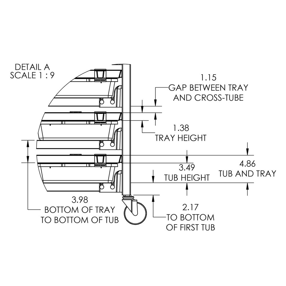 V-18 Tubs (3.5″H x 7.375″W): 9 shelves, 10 tubs per level