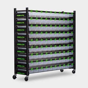 V-35s Tubs (3.5″H x 15″W): 9 shelves, 5 tubs per level