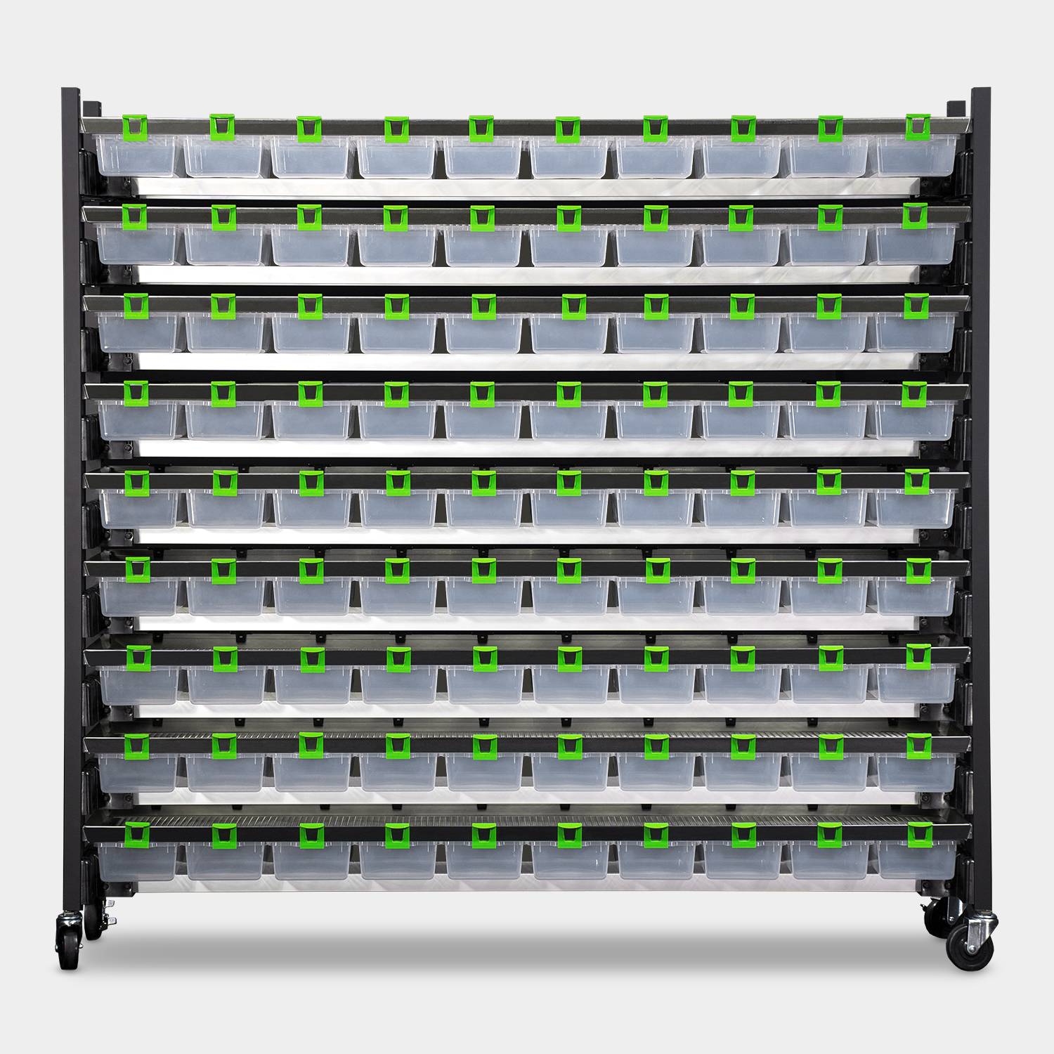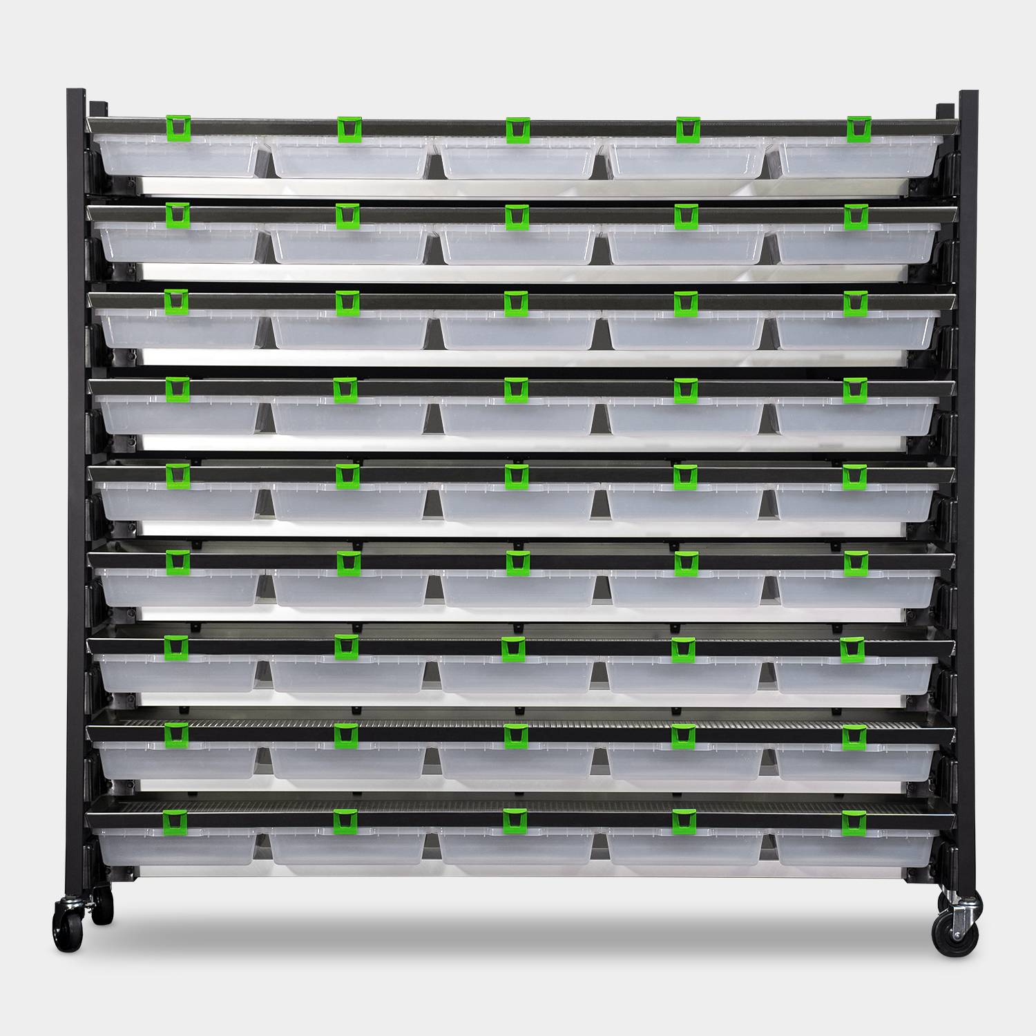 Ultra-Efficient: Drop-trough food trays and easy-to-use watering methods make servicing your rack quick and easy.
