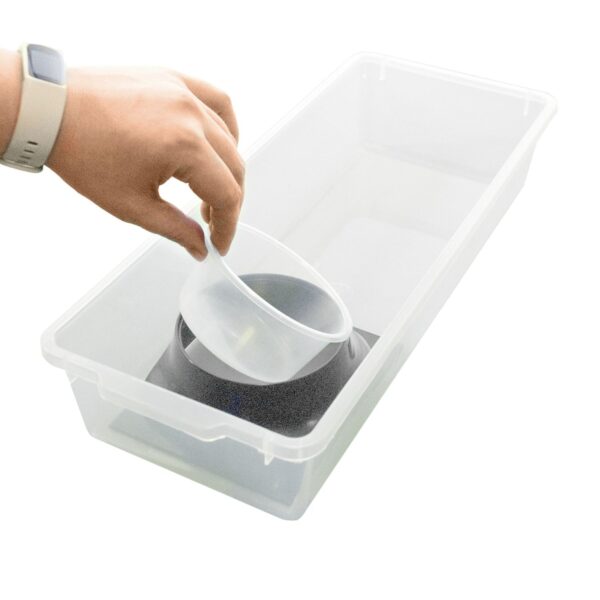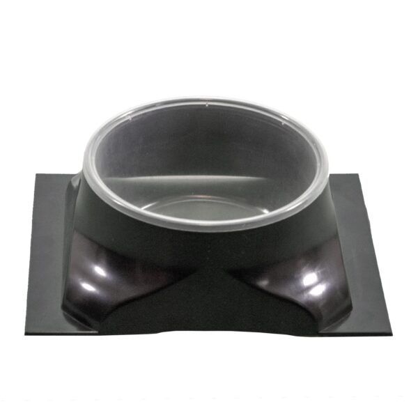 This versatile water dish holder will hold our 12oz. semi-disposable water dish liner. It lets you add a water dish to almost every tub we sell.